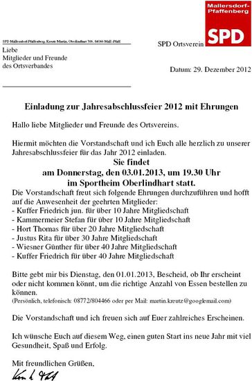 Hiermit möchten die Vorstandschaft und ich Euch alle herzlich zu unserer Jahresabschlussfeier für das Jahr 2012 einladen.