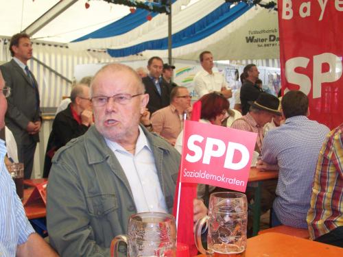 Ehrenvorsitzender Dieter Gipser in der Diskussion über die Rede von Sigmar Gabriel Am Montag, den 06.09.2010 fand der Politische Frühschoppen 2010 in Abensberg statt. Für die SPD sprachen Bundesvorsitzender MdB Sigmar Gabriel und Landesvorsitzender MdB Florian Pronoldim Jungbräu-Zelt vor über 2000 Zuhörern. Und die Mitglieder des Ortsvereins waren auch mit dabei. Bundesgesundheitminister Rösler von der umfragetechnisch arg gebeutelten FDP sprach vor nur 250 Gästen.