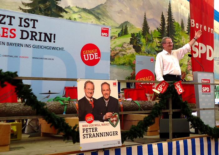"Die Leute sind schon unserer Meinung. Wir müssen sie nur noch überzeugen, am 15. September bitte erstmals entsprechend ihrer eigenen Interessen und Überzeugungen zu wählen" das sagte Christian Ude bei der Volksfestkundgebung am Sonntag in Pfaffenberg. Die Verschleppung des Infrastruktur-Ausbaus, Landesbankverluste, Schulmisere, mangelhafte Kinderbetreuungsangebote, Verlust von Arbeitnehmerrechten – er führt seine Gründe an, dass Wähler nicht wieder aus "purer Gewohnheit die CSU" ankreuzen.